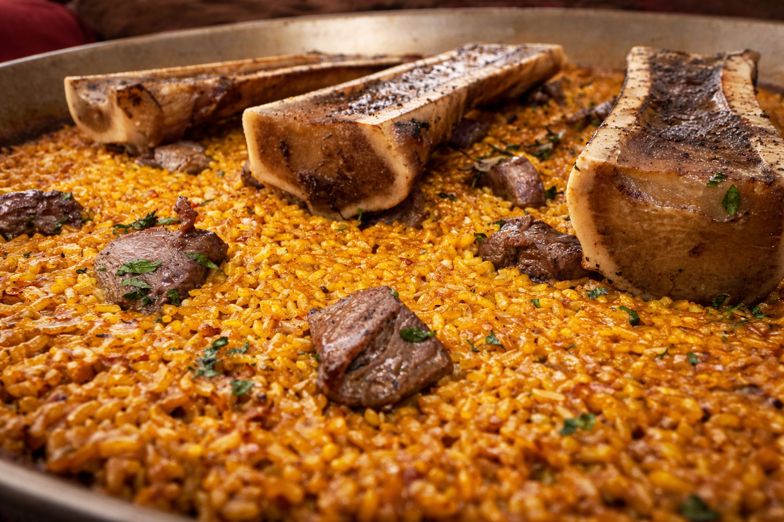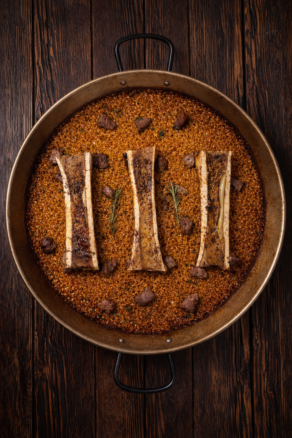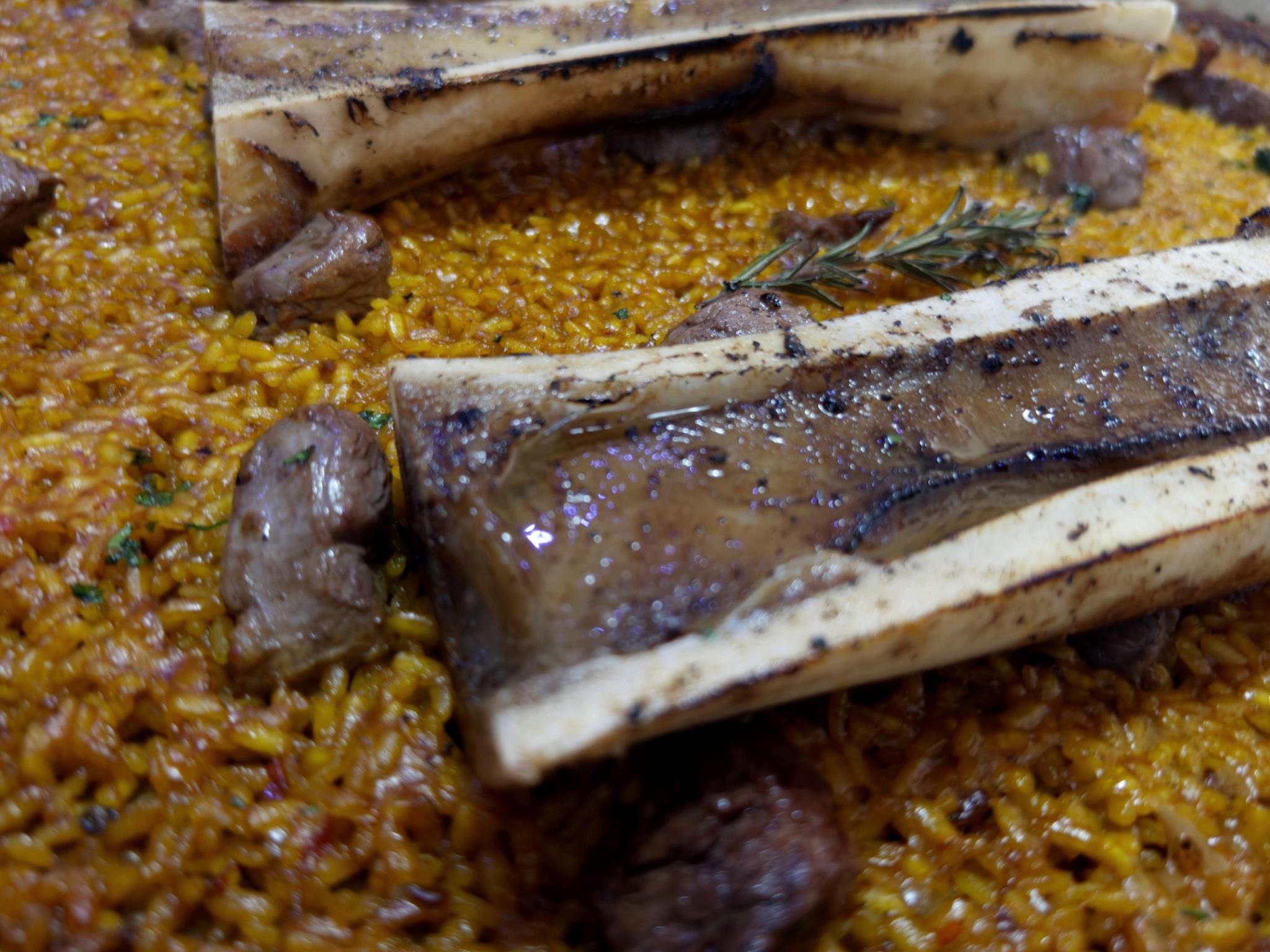 Este arroz tiene su ritual. Con una cucharita, extrae el tuétano del interior de los huesos con facilidad. Una vez vaciados, mézclalo bien con el arroz y los dados de solomillo para integrar todos los sabores.